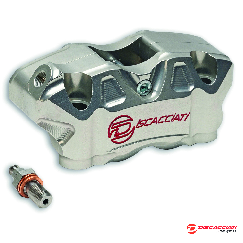 Pinza 4-pistoni attacco radiale interasse 82mm. Idonea soprattutto per Mini GP e Moto3 mono disco. Interamente ricavata da barre di Ergal 7075 con pistoni in alluminio trattati con ossidazione dura, guarnizioni racing, vite spurgo in acciaio. Anodizzata.