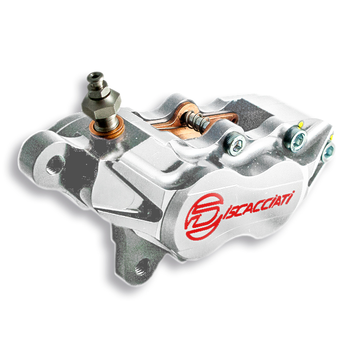 Pinza assiale 4-pistoni interasse 80mm. Sinistra. Specifica per Triumph Bonneville / Scrambler CERCHI A RAGGI, da abbinare a disco FDR605H10. Pinza ad attacco diretto su forcella originale. Interamente ricavata da barre di Ergal 7075 con pistoni in alluminio trattati con ossidazione dura, guarnizioni racing, vite spurgo in acciaio. Anodizzata.