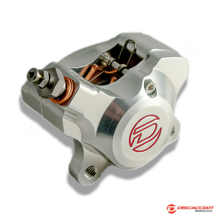 Pinza assiale racing 2-pistoni interasse 55mm. Specifica per Piaggio Zip. Interamente ricavata da barre di Ergal 7075 con pistoni in alluminio trattati con ossidazione dura, guarnizioni racing, vite spurgo in acciaio. Anodizzata.